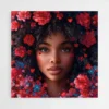Tableau visage femme fleurs rouges