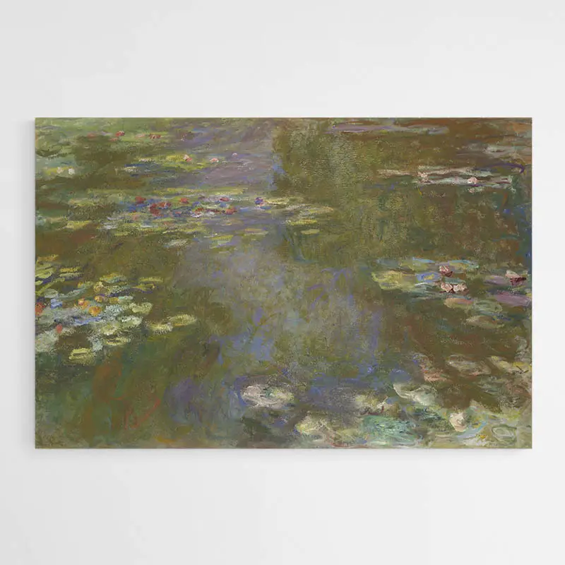 Après la première Grande Guerre qui a déchiré le monde, le peintre recommence à peindre après une longue pose due à des raisons de santé. Néanmoins, après 1917, l'artiste commence une série de production intense dont ce tableau Les Nénuphars de Monet. Après avoir fait quelques travaux dans sa résidence, son jardin et son atelier, il entame une suite de peinture appelée « les Nymphéas ' dont celle-ci et une autre disponible sur tableaux du Monde. Cette dernière va marquer l'histoire de l'art. En effet, il s'agit de l'une des séries les plus mythiques de l'histoire identifiable entre mille grâce à ses aspects et sa technique si particulière. Il existe des indices que ces compositions ont été peintes immédiatement en extérieur, confirmant la célèbre « peinture sur le motif ' si adorée des impressionnistes. Il les a ensuite rectifiées à son atelier. Cependant, à cette phase de sa carrière artistique, l'écart entre ce que peinture Monet face au sujet et de mémoire est presque identique grâce à l'expérience acquise tout a long de sa vie.