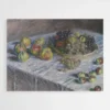 Ce tableau d'une nature morte de Claude Monet a probablement été peint avec d'autres en 1879-1880, sachant qu'elles resteraient plus facilement commercialisables que ses panoramas de paysage. Dans Pommes et raisins de Monet, il a utilisé la subtilité de la couleur, de l'éclairage et de la texture que l'on retrouve dans ses paysages les plus impressionnistes. Cela est en particulier flagrant dans la vaste surface du tissu. Le jeu de lumière sur les coups de brosse horizontaux (indiquant les plis de la nappe) remémore des tableaux précédents dans lesquelles le peintre français employait des horizontales brèves semblables de couleurs diversifiées pour indiquer l'ondulation de l'eau au soleil.