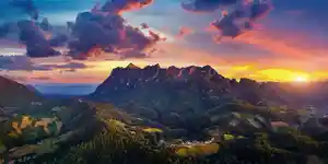 Ce Tableau d'un Coucher de Soleil en Montagne est une photographie d'une vue vertigineuse et éblouissante de la province de Chiang Maï en Thaïlande qui apportera immédiatement plus d'espace à la pièce où il sera affiché. Un ciel légèrement nuageux, une vallée recouverte d'arbre, un coucher de soleil orangé ainsi qu'une montagne majestueuse qui se dresse jusqu'au ciel au milieu de tout ces autres éléments donnent a cette toile une aura particulièrement apaisante. Un vrai plaisir pour les yeux, c'est un à tableau à contempler sans modération.