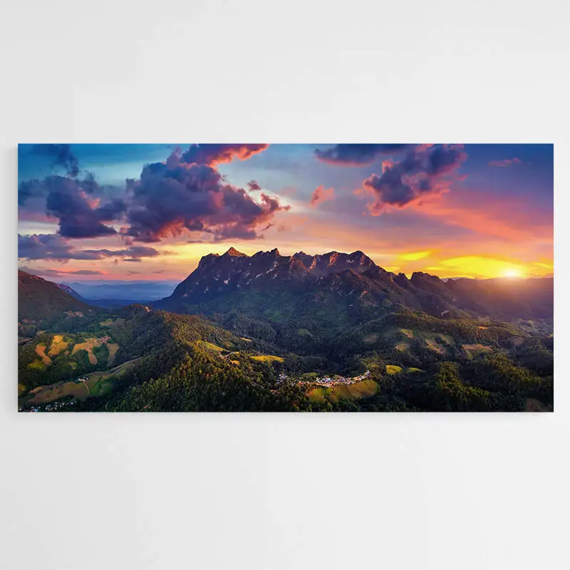 Ajoutez une vue grandiose à votre décoration d'intérieur avec ce Tableau d'un Coucher de Soleil en Montagne et surprenez vos invités.