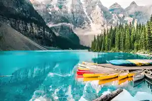 Ce Tableau déco d'une Montagne est une impressionnante photographie d'un paysage fabuleux, presque irréaliste. Au premier plan, nous pouvons y observer un lac de montagne avec ses petites barques jaunes. Au second plan, une petite forêt. Et enfin en arrière-plan les majestueuses montagnes recouvertes de neige éternelle qui semble s'élever jusqu'au ciel. C'est une toile moderne et originale qui s'adaptera à tout type de décoration. N'hésitez plus et faites venir cette vue à couper le souffle dans votre salon, votre chambre ou encore votre bureau.