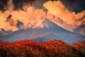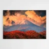 Ce tableau est un cliché de montagne tout à fait surprenant, les teintes sépia que le coucher de soleil donne a la photographie lui donnent un côté vintage qui apportera du cachet à votre décoration d'intérieur. Mais la forêt au premier plan est toute rouge, ce qui donne vie au tableau. L'élément le plus marquant sur cette œuvre est sans doute la ligne des neiges éternelles sur le flanc de la montagne qui crée une ligne qui scinde l'image en deux. Un cliché surprenant qui s'adaptera à merveille à votre salon et qui lui donnera une sensation d'espace.