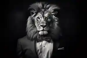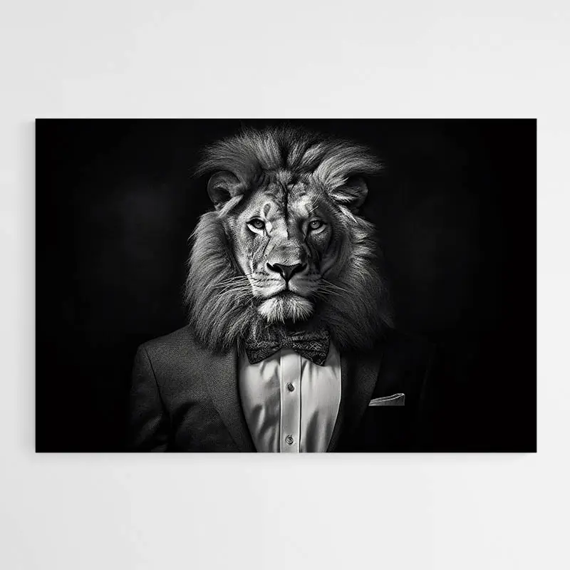 Donnez de l'élégance et du style à votre décoration avec ce magnifique tableau d'un Lion en costume.