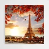 Ce tableau de la tour Eiffel surplombé par un coucher de soleil est fait pour tous les amateurs de paysage urbain. De plus, les feuilles orangées d'automne ainsi que les couleurs chaudes du coucher de soleil procureront à votre décoration d'intérieur une ambiance chaleureuse et unique.