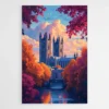 Ce qu'on ressent devant ce tableau Cathédrale, c'est une sorte de calme qui prend son temps. On est happé par les lignes de l'architecture, les colonnes, les vitraux qu'on devine, et surtout par ce ciel aux couleurs presque irréelles. Il y a une vraie profondeur, comme si l'image respirait doucement. C'est fort et doux à la fois.