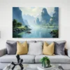 Ce Tableau Paysage Chinois, c'est un peu comme une fenêtre ouverte sur un autre temps. On y entre doucement, sans faire de bruit, et tout de suite, on ressent une paix profonde. Les montagnes sont là, immobiles et majestueuses, l'eau coule tranquillement, et ces petites barques qui glissent lentement sur la rivière... on se surprend à imaginer les histoires qu'elles transportent.