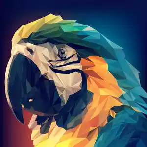 Sur ce tableau d'un perroquet design, nous pouvons observer cet oiseau c'est particulier. C'est une œuvre déstructurée. En effet, est composé de triangles de couleurs, c'est ce qui donne ce côté moderne à œuvre si particulière. Le tout sur un fond sombre, parfait pour une décoration contemporaine.