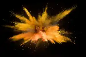 Ce tableau abstrait orange est une explosion de couleur et plus précisément de poudre intensément orange. Une toile très contemporaine !