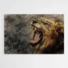 Ce tableau d'un lion qui rugit représente un lion de profil en train de rugir. Nous pouvons alors ressentir à travers ce tableau toute la férocité du félin.