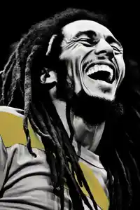 Ce tableau de Bob Marley, il ne crie pas. Il murmure. Il parle doucement, mais avec force. Le choix du noir et blanc, c'est ce qui lui donne toute sa puissance. On n'a pas besoin de couleurs ici. Juste son visage, son sourire lumineux, ses dreadlocks qui encadrent son regard... et ça suffit pour ressentir tout ce qu'il incarne.