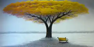 Tableau arbre jaune : une scène paisible et lumineuse qui invite à la rêverie