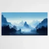 Ce tableau Montagne et Brume, on le regarde et on oublie le bruit autour. Il y a cette lumière bleue qui descend doucement sur les montagnes. Cette brume qui flotte comme un voile. Et ces barques, là, au milieu, qui semblent glisser sans un bruit. C’est calme, mais pas vide. C’est rempli de silence.
