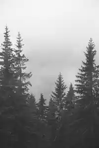 Au premier plan de ce tableau scandinave nordique, nous y voyons des sapins. L'auteur joue sur la l'impression te profondeur avec un fond brumeux laissant transparaître le reste de la forêt. Il y a un fort jeu de contrastes entre les arbres très sombres et le fond très blanc. C'est une photographie pour les amateurs de photo apprécierons. Ce tableau s'adaptera parfaitement à une déco contemporaine et simple.