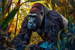 Ce Tableau Gorille Moderne, on l'adore pour son côté vraiment unique. C'est un mélange entre art urbain et nature sauvage, un peu comme si le gorille avait été dessiné dans une grande verrière colorée. Il y a plein de détails, plein de petits morceaux de couleurs qui s'assemblent comme une mosaïque.