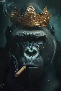 Ce Tableau Gorille Roi, on ne va pas se mentir, il impose. Mais pas juste par sa taille ou son regard perçant. Ce qu'on remarque tout de suite, c'est l'attitude. Ce gorille, il trône, tranquille, avec sa couronne dorée bien posée sur la tête et un cigare au coin des lèvres. Il y a quelque chose de royal, oui, mais aussi un petit côté rebelle qui change tout.
