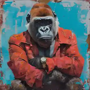 Franchement, ce tableau Gorille Street Art, c'est un vrai coup de poing visuel. Il a tout : le style, l'attitude, et cette énergie brute qui mélange nature sauvage et ambiance urbaine. Ce gorille-là, dans sa veste rouge, les bras croisés, il en impose. Il a l'air de dire : « Je suis là, et je bouge pas ».
