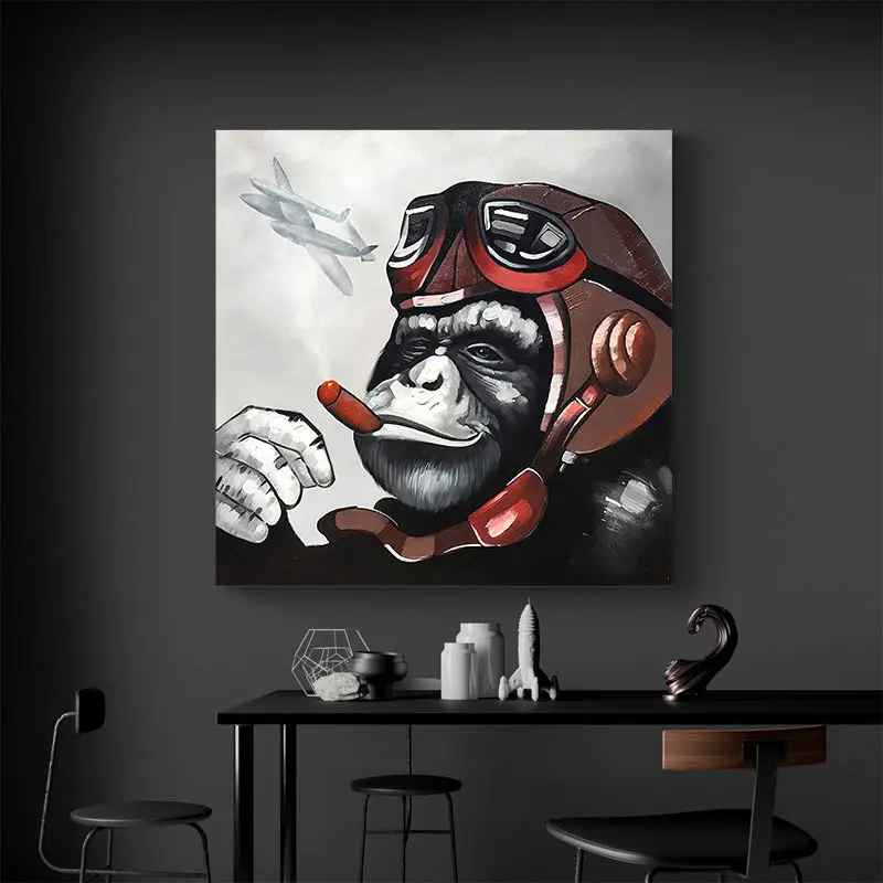 Ce tableau d'un singe aviateur est et les œuvres macaques en général sont très en vogue dans la décoration d'intérieur. Cela s'explique assurément par notre désir d'exotisme. Les animaux exotiques particulièrement les animaux de la forêt trouvent leurs places dans nos décorations d'intérieur depuis déjà des années en mettant de la couleur et de la vie à nos décorations d'intérieur pour le plus grand plaisir de nos yeux. Peu importe leurs poses ou leurs expressions, les œuvres de primates ajoutent souvent une touche d'humour et de gaieté à notre appartement ou maison.
