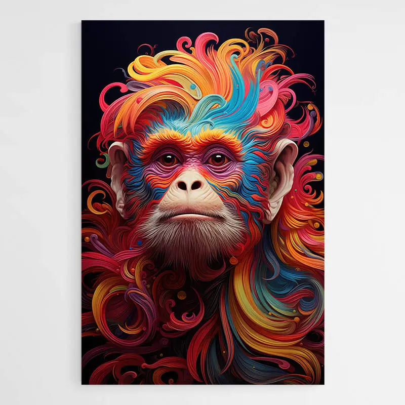 Ce tableau singe coloré est une belle ode à la diversité et à la puissance de la couleur, un langage universel qui parle droit au cœur.