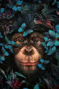Je ne m'y attendais pas. Ce Tableau Singe Design, je l'ai découvert un peu par hasard, et il m'a tout de suite interpelé. Il y a ce regard, qui est intense, presque humain, du singe qui vous fixe a travers le tableau. Et autour, des papillons bleu qui semblent flotter dans l'air. Franchement, l'ensemble est à la fois doux, sauvage, et moderne.