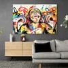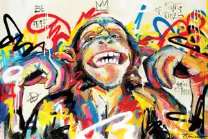 Ce tableau d'un singe qui fait une grimace donne l'impression d'être réalisé avec une bombe de peinture à la façon des artistes du courant street art. Une toile idéale pour procurer une touche d'humour et d'exotisme a votre décoration. En effet, les animaux exotiques et plus en particulier les singes inondent nos maisons depuis déjà quelques années en nous fournissant beaucoup de teintes vives et d'humour à nos décorations pour le plus grand plaisir de nos yeux.