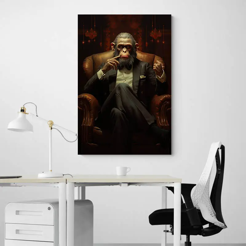 Le tableau singe mafia attire le regard par son style unique et son audace. Ce singe en costume impeccable, assis sur un fauteuil en cuir, ne se contente pas d'être une image : c'est un symbole puissant de pouvoir et de détermination, un vrai chef dans son univers.