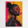 Tableau Street Art Femme Noire Chewing Gum : Un Portrait Urbain et Coloré