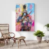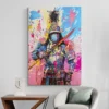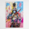 L’armure et le sabre évoquent l’histoire et la discipline, tandis que les projections de couleurs, les éclaboussures et les contrastes très vifs viennent casser le cadre. Ce mélange donne une lecture moderne, presque rebelle, d’une figure classique.