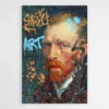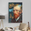 Le célèbre visage de Van Gogh est revisité avec des textures et des tags inspirés du graffiti. Les touches de peinture, les éclaboussures et les inscriptions modernes cassent le côté classique du portrait et lui donnent une énergie très actuelle. Le résultat attire immédiatement l’œil.
