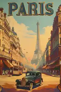 Découvrez notre Affiche Paris Vintage, une œuvre qui évoque l'élégante nostalgie de la capitale française. Avec son illustration raffinée, cette affiche transporte instantanément dans l'univers romantique et vibrant de Paris, avec ses rues animées et son emblématique Tour Eiffel. Ses couleurs pastel, mêlant des teintes chaudes, capturent parfaitement l'atmosphère typique de la ville à une époque révolue.